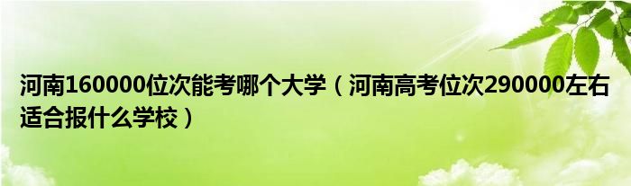 大家好,小高來(lái)為大家解答以上問(wèn)題。河南160000位次能考哪個(gè)大學(xué),河南高考位次290000左右適合報(bào)什么學(xué)校很多人還不知道,現(xiàn)在讓我們一起來(lái)看看吧!