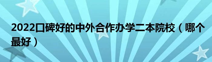 大家好,小高來為大家解答以上問題。2022口碑好的中外合作辦學(xué)二本院校,哪個(gè)最好很多人還不知道,現(xiàn)在讓我們一起來看看吧!