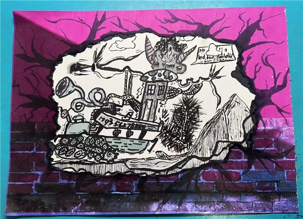 其他老師拿著馬克筆+彩鉛,也紛紛創(chuàng)作出了有個(gè)性的畫面。