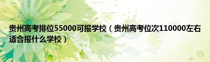 大家好,小高來為大家解答以上問題。貴州高考排位55000可報學校,貴州高考位次110000左右適合報什么學校很多人還不知道,現(xiàn)在讓我們一起來看看吧!