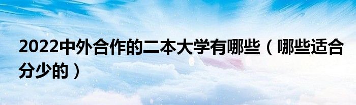 大家好,小高來為大家解答以上問題。2022中外合作的二本大學(xué)有哪些,哪些適合分少的很多人還不知道,現(xiàn)在讓我們一起來看看吧!