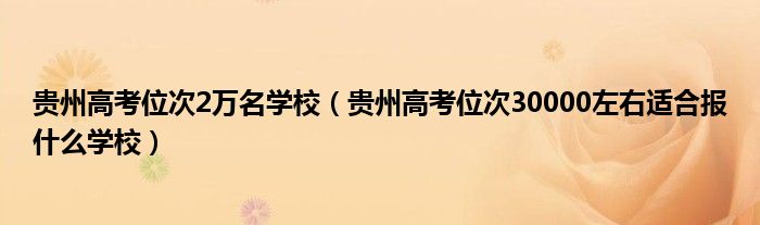大家好,小高來為大家解答以上問題。貴州高考位次2萬名學(xué)校,貴州高考位次30000左右適合報(bào)什么學(xué)校很多人還不知道,現(xiàn)在讓我們一起來看看吧!