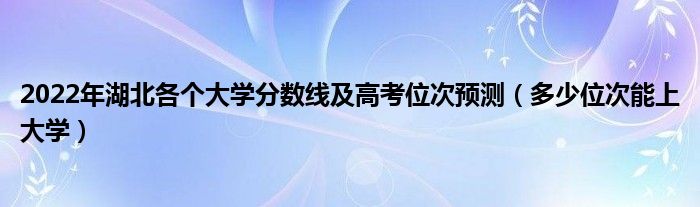 大家好,小高來為大家解答以上問題。2022年湖北各個大學(xué)分?jǐn)?shù)線及高考位次預(yù)測,多少位次能上大學(xué)很多人還不知道,現(xiàn)在讓我們一起來看看吧!