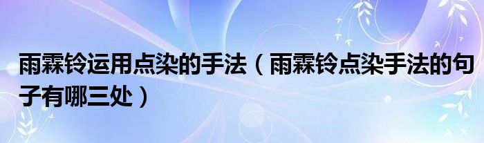 大家好,小高來為大家解答以上問題。雨霖鈴運用點染的手法,雨霖鈴點染手法的句子有哪三處很多人還不知道,現(xiàn)在讓我們一起來看看吧!