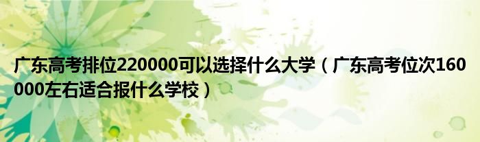 大家好,小高來為大家解答以上問題。廣東高考排位220000可以選擇什么大學(xué),廣東高考位次160000左右適合報(bào)什么學(xué)校很多人還不知道,現(xiàn)在讓我們一起來看看吧!