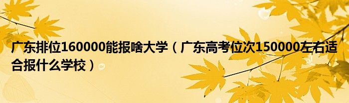 大家好,小高來(lái)為大家解答以上問(wèn)題。廣東排位160000能報(bào)啥大學(xué),廣東高考位次150000左右適合報(bào)什么學(xué)校很多人還不知道,現(xiàn)在讓我們一起來(lái)看看吧!