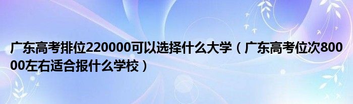 大家好,小高來為大家解答以上問題。廣東高考排位220000可以選擇什么大學(xué),廣東高考位次80000左右適合報(bào)什么學(xué)校很多人還不知道,現(xiàn)在讓我們一起來看看吧!