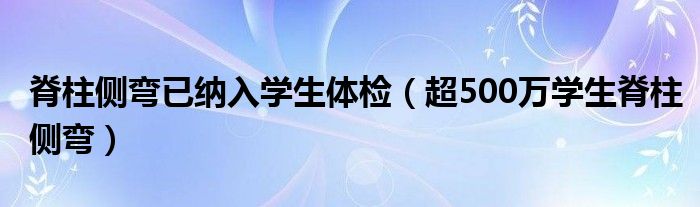 大家好,小高來(lái)為大家解答以上問(wèn)題。脊柱側(cè)彎已納入學(xué)生體檢,超500萬(wàn)學(xué)生脊柱側(cè)彎很多人還不知道,現(xiàn)在讓我們一起來(lái)看看吧!