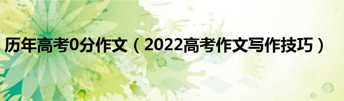 大家好,小高來為大家解答以上問題。歷年高考0分作文,2022高考作文寫作技巧很多人還不知道,現(xiàn)在讓我們一起來看看吧!
