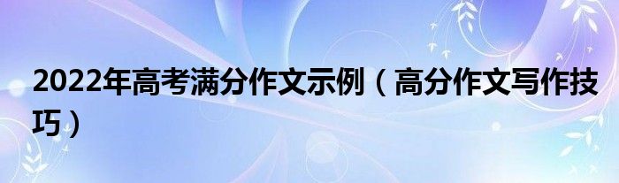大家好,小高來為大家解答以上問題。2022年高考滿分作文示例,高分作文寫作技巧很多人還不知道,現(xiàn)在讓我們一起來看看吧!