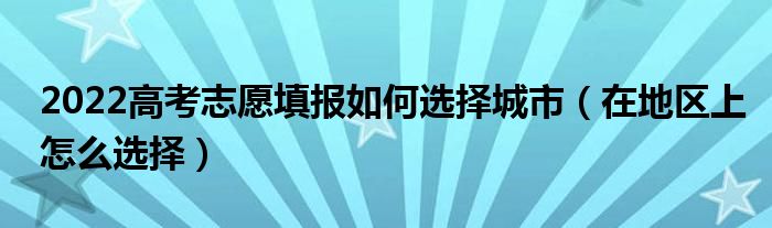 大家好,小高來為大家解答以上問題。2022高考志愿填報(bào)如何選擇城市,在地區(qū)上怎么選擇很多人還不知道,現(xiàn)在讓我們一起來看看吧!