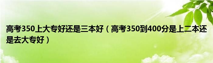 大家好,小高來為大家解答以上問題。高考350上大專好還是三本好,高考350到400分是上二本還是去大專好很多人還不知道,現(xiàn)在讓我們一起來看看吧!
