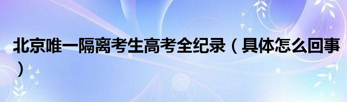大家好,小高來(lái)為大家解答以上問(wèn)題。北京唯一隔離考生高考全紀(jì)錄,具體怎么回事很多人還不知道,現(xiàn)在讓我們一起來(lái)看看吧!