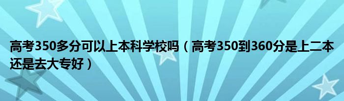大家好,小高來為大家解答以上問題。高考350多分可以上本科學(xué)校嗎,高考350到360分是上二本還是去大專好很多人還不知道,現(xiàn)在讓我們一起來看看吧!
