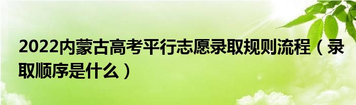 大家好,小高來為大家解答以上問題。2022內(nèi)蒙古高考平行志愿錄取規(guī)則流程,錄取順序是什么很多人還不知道,現(xiàn)在讓我們一起來看看吧!