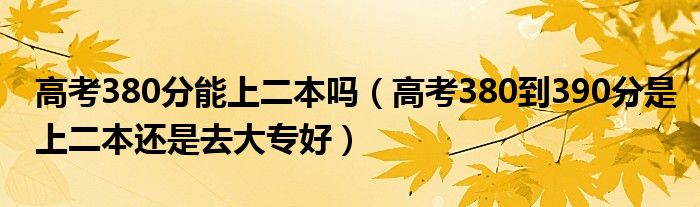 大家好,小高來(lái)為大家解答以上問(wèn)題。高考380分能上二本嗎,高考380到390分是上二本還是去大專好很多人還不知道,現(xiàn)在讓我們一起來(lái)看看吧!