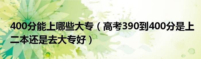 大家好,小高來為大家解答以上問題。400分能上哪些大專,高考390到400分是上二本還是去大專好很多人還不知道,現(xiàn)在讓我們一起來看看吧!