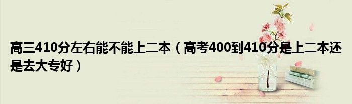 大家好,小高來為大家解答以上問題。高三410分左右能不能上二本,高考400到410分是上二本還是去大專好很多人還不知道,現(xiàn)在讓我們一起來看看吧!