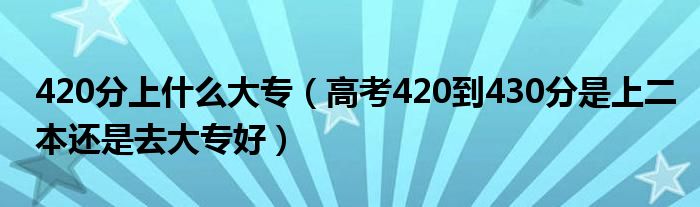 大家好,小高來為大家解答以上問題。420分上什么大專,高考420到430分是上二本還是去大專好很多人還不知道,現(xiàn)在讓我們一起來看看吧!