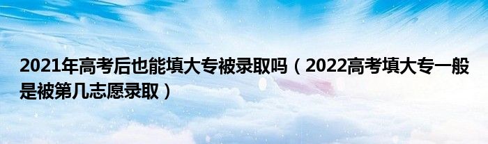 大家好,小高來為大家解答以上問題。2021年高考后也能填大專被錄取嗎,2022高考填大專一般是被第幾志愿錄取很多人還不知道,現(xiàn)在讓我們一起來看看吧!