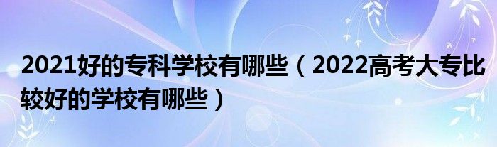 大家好,小高來(lái)為大家解答以上問(wèn)題。2021好的??茖W(xué)校有哪些,2022高考大專比較好的學(xué)校有哪些很多人還不知道,現(xiàn)在讓我們一起來(lái)看看吧!
