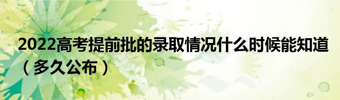 大家好,小高來(lái)為大家解答以上問(wèn)題。2022高考提前批的錄取情況什么時(shí)候能知道,多久公布很多人還不知道,現(xiàn)在讓我們一起來(lái)看看吧!