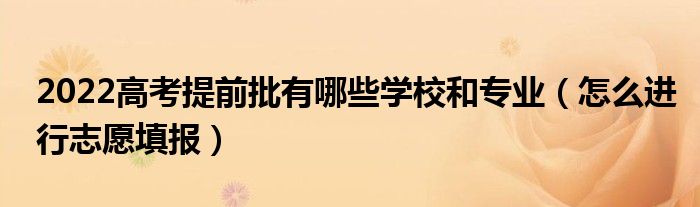 大家好,小高來為大家解答以上問題。2022高考提前批有哪些學(xué)校和專業(yè),怎么進(jìn)行志愿填報很多人還不知道,現(xiàn)在讓我們一起來看看吧!