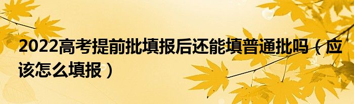 大家好,小高來為大家解答以上問題。2022高考提前批填報后還能填普通批嗎,應該怎么填報很多人還不知道,現(xiàn)在讓我們一起來看看吧!