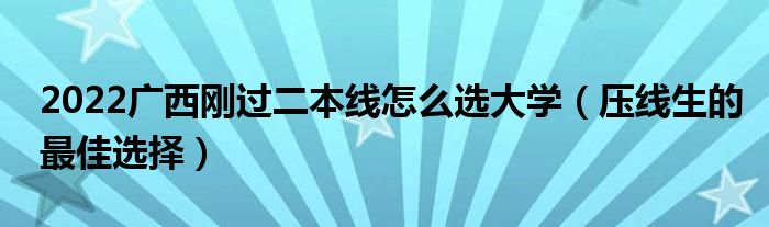 大家好,小高來為大家解答以上問題。2022廣西剛過二本線怎么選大學(xué),壓線生的最佳選擇很多人還不知道,現(xiàn)在讓我們一起來看看吧!