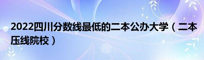 大家好,小高來為大家解答以上問題。2022四川分?jǐn)?shù)線最低的二本公辦大學(xué),二本壓線院校很多人還不知道,現(xiàn)在讓我們一起來看看吧!