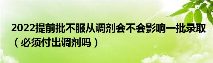 大家好,小高來為大家解答以上問題。2022提前批不服從調(diào)劑會(huì)不會(huì)影響一批錄取,必須付出調(diào)劑嗎很多人還不知道,現(xiàn)在讓我們一起來看看吧!