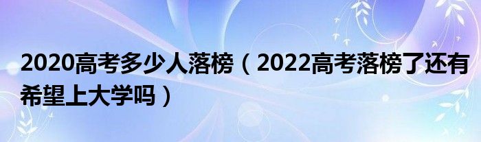 大家好,小高來為大家解答以上問題。2020高考多少人落榜,2022高考落榜了還有希望上大學嗎很多人還不知道,現(xiàn)在讓我們一起來看看吧!