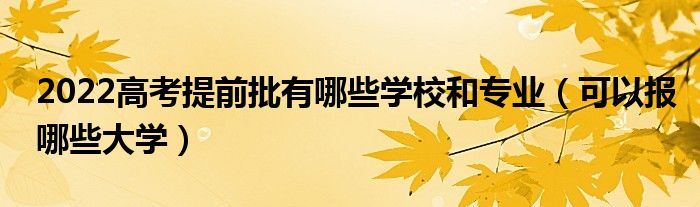 大家好,小高來為大家解答以上問題。2022高考提前批有哪些學(xué)校和專業(yè),可以報哪些大學(xué)很多人還不知道,現(xiàn)在讓我們一起來看看吧!