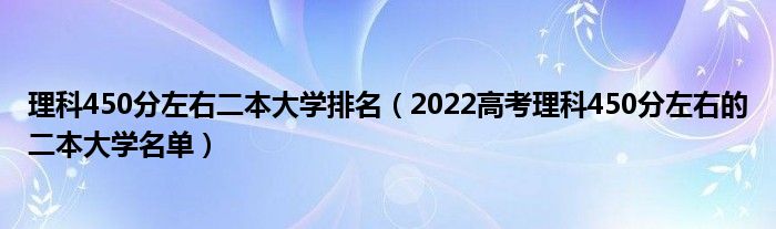 大家好,小高來為大家解答以上問題。理科450分左右二本大學(xué)排名,2022高考理科450分左右的二本大學(xué)名單很多人還不知道,現(xiàn)在讓我們一起來看看吧!