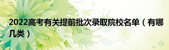 大家好,小高來為大家解答以上問題。2022高考有關(guān)提前批次錄取院校名單,有哪幾類很多人還不知道,現(xiàn)在讓我們一起來看看吧!