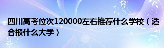 大家好,小高來為大家解答以上問題。四川高考位次120000左右推薦什么學(xué)校,適合報(bào)什么大學(xué)很多人還不知道,現(xiàn)在讓我們一起來看看吧!
