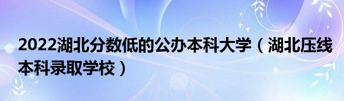 大家好,小高來為大家解答以上問題。2022湖北分?jǐn)?shù)低的公辦本科大學(xué),湖北壓線本科錄取學(xué)校很多人還不知道,現(xiàn)在讓我們一起來看看吧!