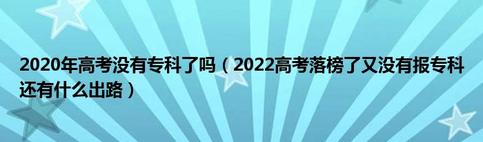 大家好,小高來為大家解答以上問題。2020年高考沒有??屏藛?,2022高考落榜了又沒有報??七€有什么出路很多人還不知道,現(xiàn)在讓我們一起來看看吧!