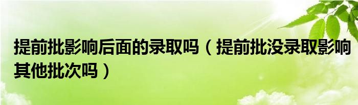 大家好,小高來(lái)為大家解答以上問(wèn)題。提前批影響后面的錄取嗎,提前批沒(méi)錄取影響其他批次嗎很多人還不知道,現(xiàn)在讓我們一起來(lái)看看吧!