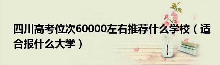 大家好,小高來為大家解答以上問題。四川高考位次60000左右推薦什么學(xué)校,適合報(bào)什么大學(xué)很多人還不知道,現(xiàn)在讓我們一起來看看吧!