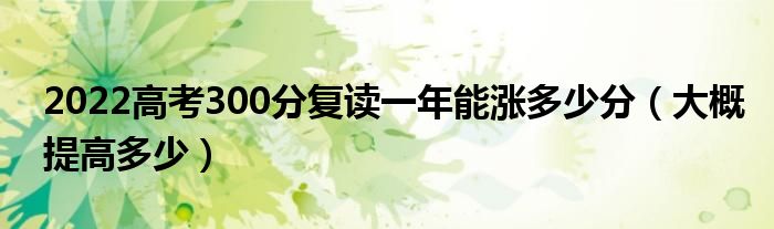 大家好,小高來為大家解答以上問題。2022高考300分復讀一年能漲多少分,大概提高多少很多人還不知道,現(xiàn)在讓我們一起來看看吧!