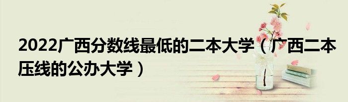 大家好,小高來為大家解答以上問題。2022廣西分數(shù)線最低的二本大學,廣西二本壓線的公辦大學很多人還不知道,現(xiàn)在讓我們一起來看看吧!
