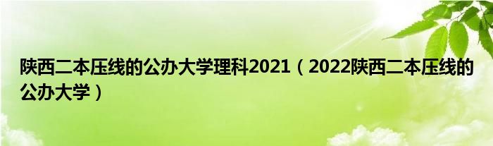 大家好,小高來為大家解答以上問題。陜西二本壓線的公辦大學(xué)理科2021,2022陜西二本壓線的公辦大學(xué)很多人還不知道,現(xiàn)在讓我們一起來看看吧!