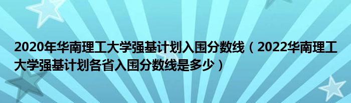 大家好,小高來為大家解答以上問題。2020年華南理工大學(xué)強(qiáng)基計劃入圍分?jǐn)?shù)線,2022華南理工大學(xué)強(qiáng)基計劃各省入圍分?jǐn)?shù)線是多少很多人還不知道,現(xiàn)在讓我們一起來看看吧!