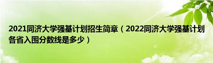 大家好,小高來(lái)為大家解答以上問(wèn)題。2021同濟(jì)大學(xué)強(qiáng)基計(jì)劃招生簡(jiǎn)章,2022同濟(jì)大學(xué)強(qiáng)基計(jì)劃各省入圍分?jǐn)?shù)線是多少很多人還不知道,現(xiàn)在讓我們一起來(lái)看看吧!