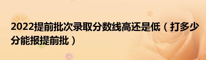 大家好,小高來為大家解答以上問題。2022提前批次錄取分?jǐn)?shù)線高還是低,打多少分能報(bào)提前批很多人還不知道,現(xiàn)在讓我們一起來看看吧!