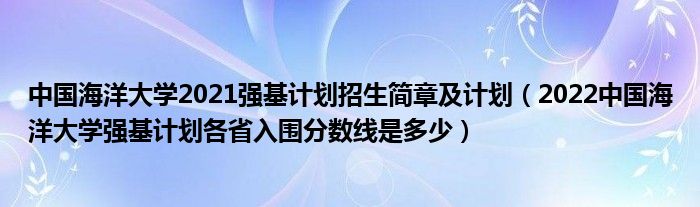 大家好,小高來為大家解答以上問題。中國海洋大學2021強基計劃招生簡章及計劃,2022中國海洋大學強基計劃各省入圍分數(shù)線是多少很多人還不知道,現(xiàn)在讓我們一起來看看吧!