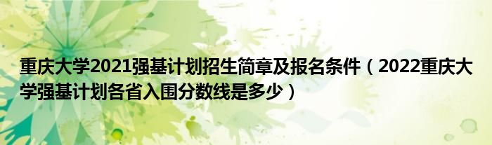 大家好,小高來為大家解答以上問題。重慶大學(xué)2021強(qiáng)基計劃招生簡章及報名條件,2022重慶大學(xué)強(qiáng)基計劃各省入圍分?jǐn)?shù)線是多少很多人還不知道,現(xiàn)在讓我們一起來看看吧!