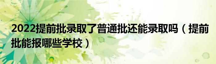 大家好,小高來為大家解答以上問題。2022提前批錄取了普通批還能錄取嗎,提前批能報(bào)哪些學(xué)校很多人還不知道,現(xiàn)在讓我們一起來看看吧!