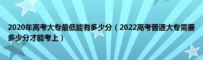 大家好,小高來為大家解答以上問題。2020年高考大專最低能有多少分,2022高考普通大專需要多少分才能考上很多人還不知道,現(xiàn)在讓我們一起來看看吧!